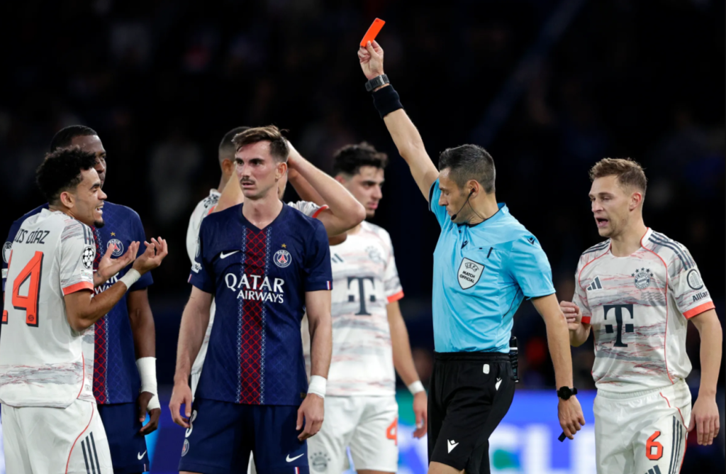 Суспензија од три натпревари му изрече денеска УЕФА на фудбалерот на Баерн Минхен, Луис Диаз, поради црвениот картон што му беше покажан во победата од 1-2 над европскиот првак ПСЖ во Лигата на шампионите претходно овој месец.