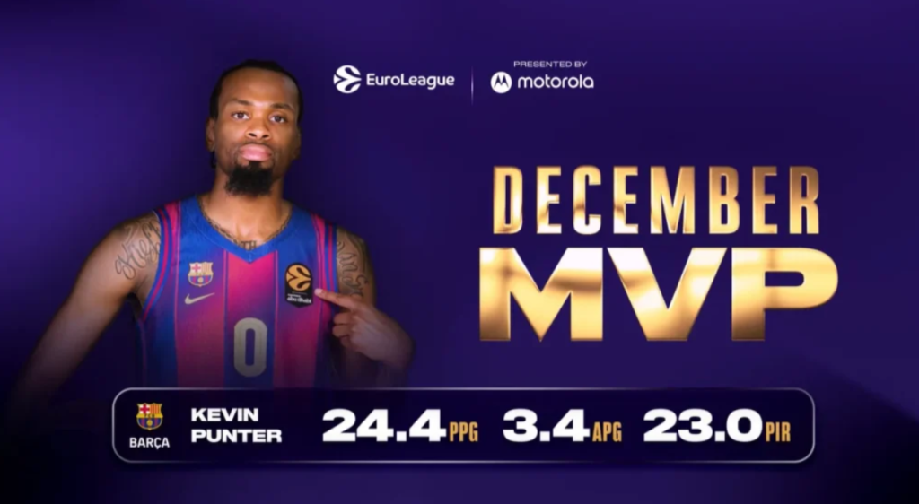 Кевин Пантер е прогласен за најкорисен играч (МВП) на Евролигата за месец декември.